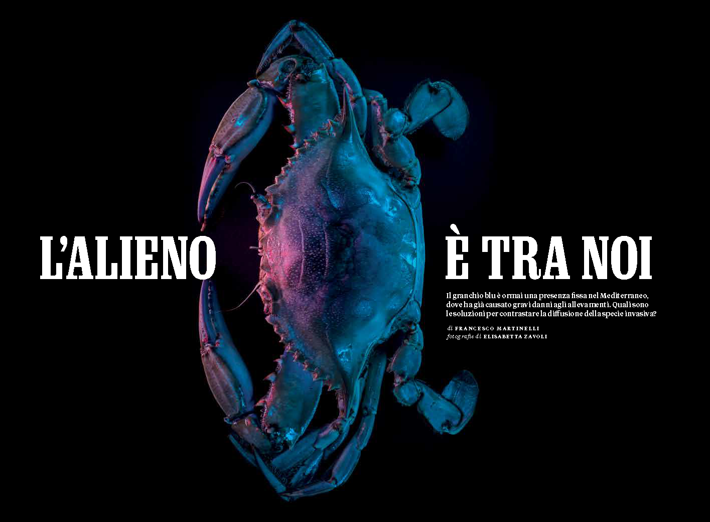 U reportaži naslova "L' alieno è tra noi" detaljno se opisuje problem invazije plavog raka duž obala Sredozemlja gdje su istaknuti socio-ekonomski problemi kao posljedica njegove invazije u nova staništa i mjere koje se mogu poduzeti kako bi se umanjio njegov utjecaj na naše ekosustave.