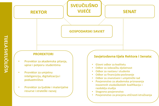 Senat je izborno stručno tijelo Sveučilišta kojim se osigurava zastupljenost svih znanstveno-nastavnih, odnosno umjetničko-nastavnih i ostalih sastavnica Sveučilišta, predstavnika studenata preddiplomskih, diplomskih i poslijediplomskih studija, različitih područja znanosti i umjetnosti, predstavnika nastavnih i suradničkih zvanja te predstavnika ostalih zaposlenika (nenastavnih zanimanja).