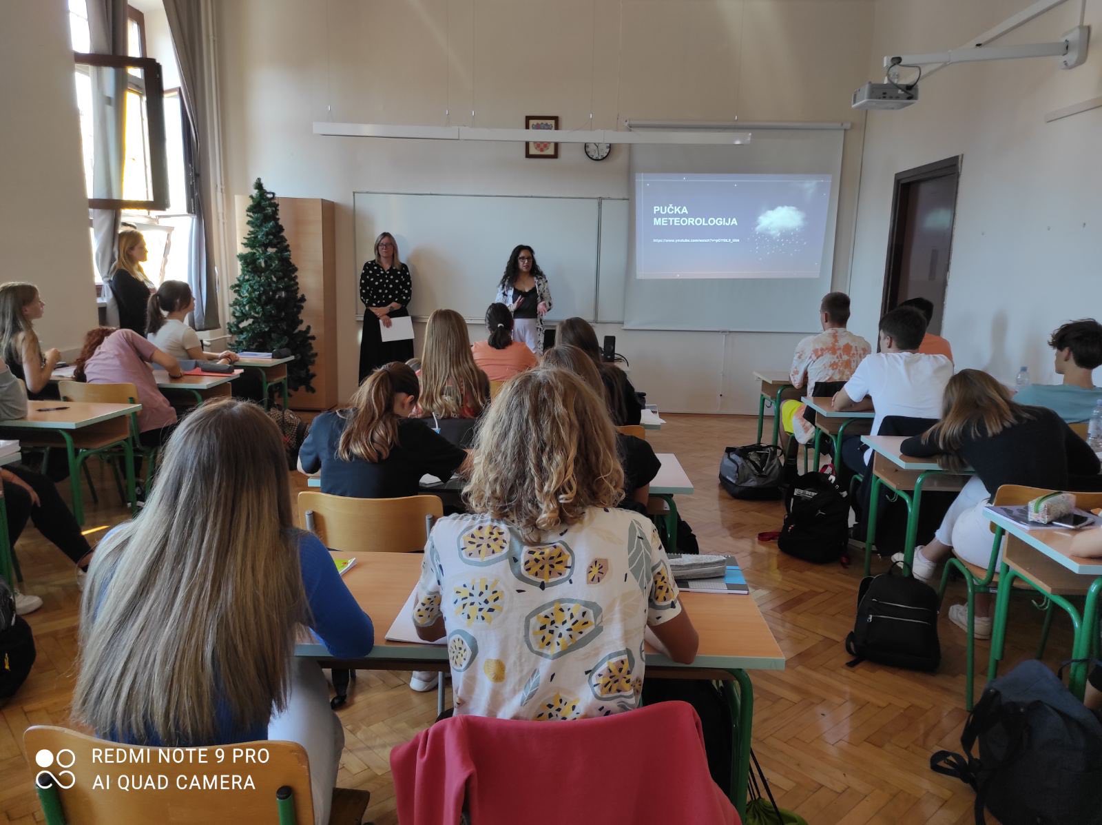 U okviru predaktivnosti Europske noći istraživača Odsjek za kroatistiku je održao radionice o jeziku vremenskih prognoza u Gimnaziji Pula i u Medicinskoj školi Pula. Učenici su aktivno sudjelovali u razmatranju jezičnih specifičnosti i dvojbi u meteorološkim temama te su imali priliku čuti i ponešto o pučkoj meteorologiji, zanimljivoj po utjecaju drugih jezika i specifičnim dijalektološkim elementima.